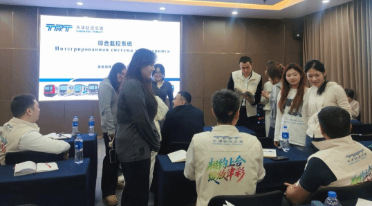 本次实习以“嵌入高规格国际项目、实现实战化能力提升”为核心特色,学生们全程深度参与天津轨道交通集团承办的“哈萨克斯坦阿斯塔纳轻轨专家学员培训项目”,全方位扎根培训一线历练。面对20余名来自哈萨克斯坦的轻轨调度专家学员,同学们精准转化课堂所学的俄语知识与跨文化沟通技巧,活跃于培训导览、课堂协助、座谈交流、生活保障等多个场景,完成随行口译、会议记录、技术术语对接、生活文化沟通等核心任务。从轨道交通专业术语的精准实时传译,到中哈文化习俗的友好互动衔接,同学们不仅显著提升了真实动态场景下的俄语听说能力与应急应变素养,更深刻认识到俄语语言技能唯有深度融入行业协作与国际交往场景,才能真正彰显其价值与生命力。