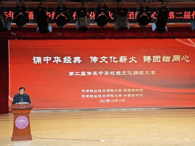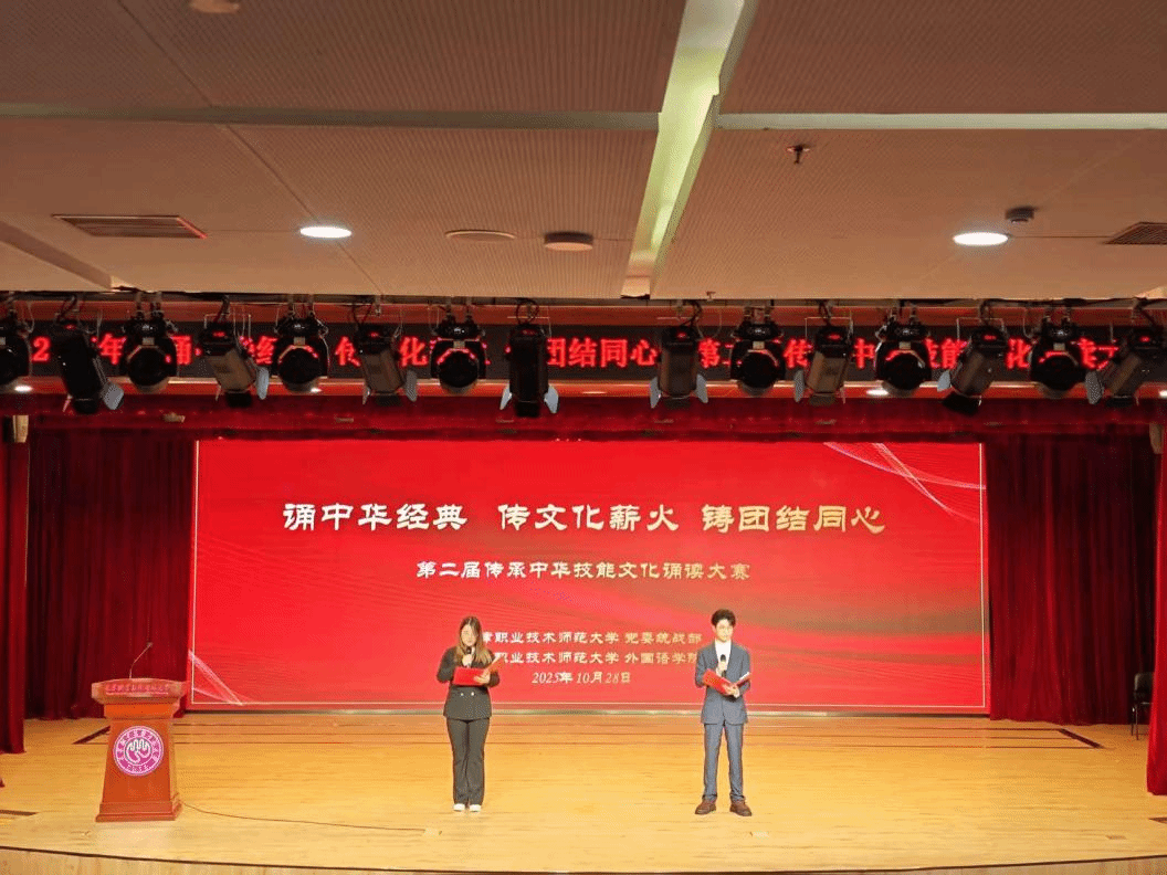 【通讯员 李小华 严博】为进一步加强铸牢中华民族共同体意识教育,促进各民族学生交往交流交融,10月28日下午,由党委统战部主办、外国语学院承办的学校2025年“诵中华经典 传文化薪火 铸团结同心”传承中华技能文化诵读大赛在大学生活动中心展演厅成功举办。外国语学院党委书记范全新、党委副书记李刚参加了活动。党委统战部、党委学工部、少民室、校团委相关负责老师担任评委。