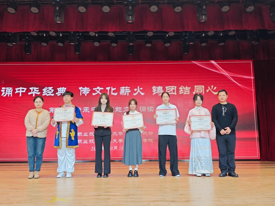 经过评委综合打分,外国语学院“墨韵传音队”凭借出色表现斩获一等奖;理学院“山河吟,南北诵队”和职业教育学院“琅心筑梦团”荣获二等奖;电子工程学院“芯声诵响”、机械工程学院“匠心笃行”和马克思主义学院“吟古诵今队”荣获三等奖;信息技术工程学院“薪火信韵队”、外国语学院“深藏blue队”、艺术学院“星火先锋队”、理学院“启眸未来队”和职业教育学院“薪火诵韵团”获优秀奖。