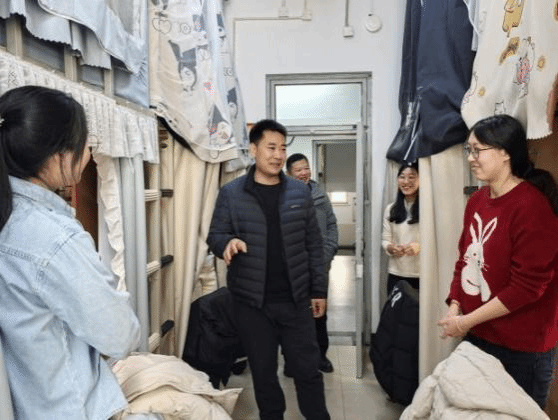12月4日,学院党委副书记李刚带领辅导员前往学院本科生、研究生宿舍,实地感受室内温度,细致询问同学们关于宿舍供暖的具体感受,耐心倾听同学们实际需求;对宿舍通风、卫生清扫、宿舍文化建设、学习考试等与学生深入交流。