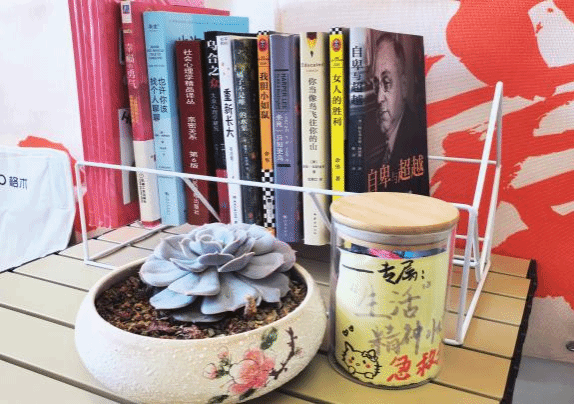“拾光驿站”设置“心灵树洞”匿名留言信箱,鼓励师生记录当下感悟,在匿名分享中传递同伴支持的力量;放置“生活精神状态急救瓶”糖果罐,里面装有励志语录咖啡糖,以最直接、温暖的方式提醒师生关注即时情绪需求,给予自我关怀;书籍展架上陈列着精选的心理学普及读物、心灵成长故事书籍,让师生自由取阅,寻找心灵共鸣和力量。